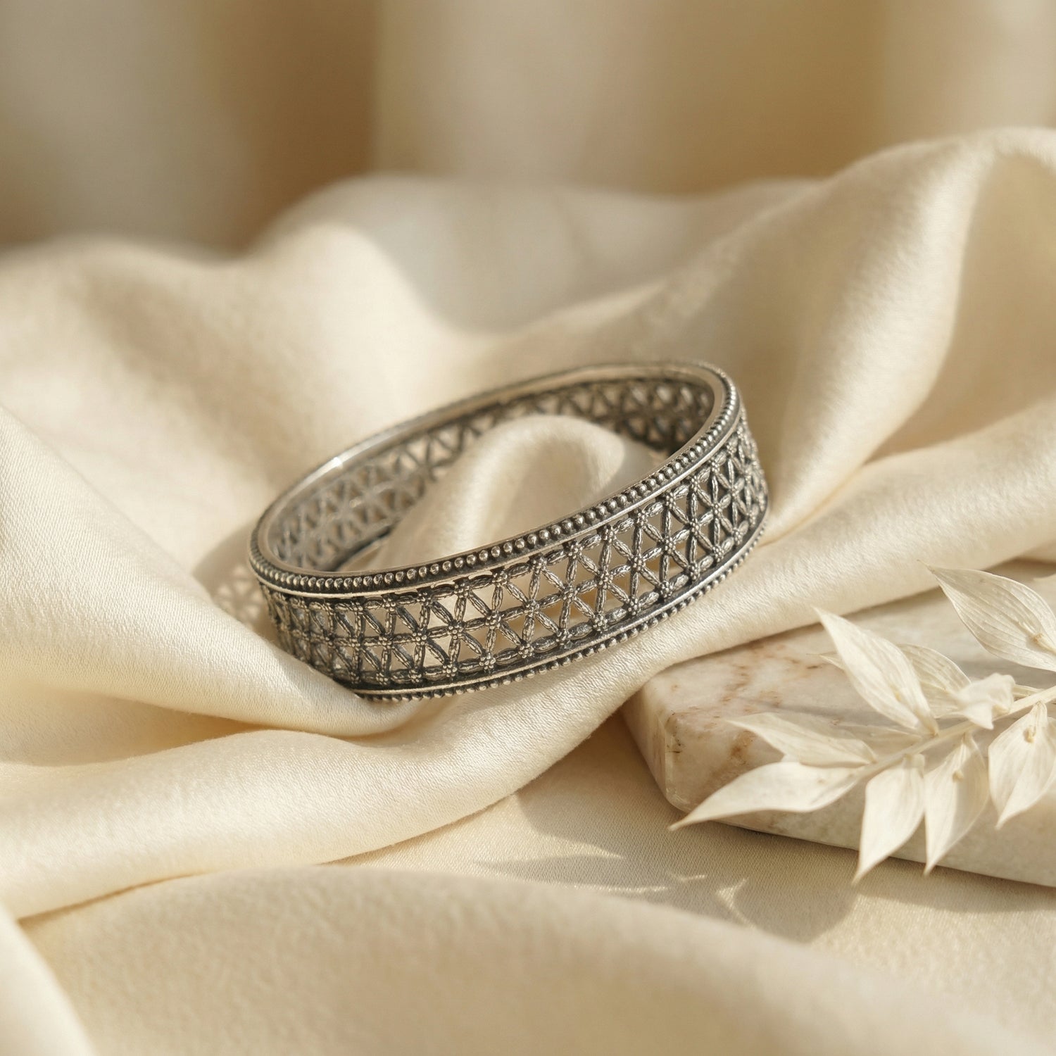 ZEVARAZ Kala Vritta Jaali Pushp Silver Bangle